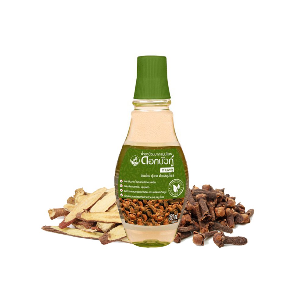 น้ำยาบ้วนปากสมุนไพรดอกบัวคู่ สูตรกานพลู
